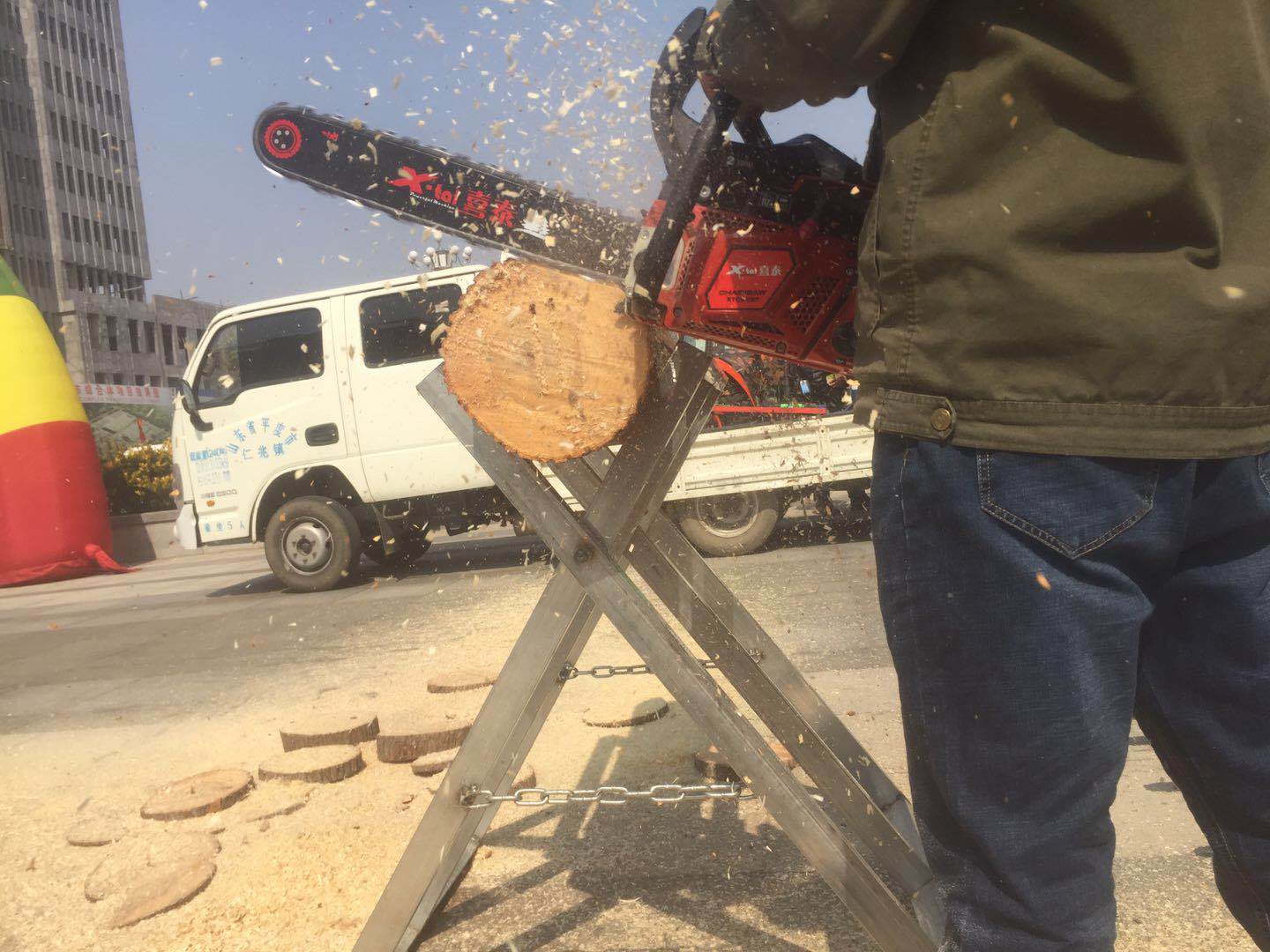 在分会场的体验区,“喜泰”的各类油锯:入门级产品XTCS 5858,专业伐木利器XTCS 5820,既省油又流线感极强的XTCS 493,还有最新推出适合山东市场的大功率油锯XTCS 598,排列整齐,等待着好奇的围观人群感受小型发动机的“推背感”。